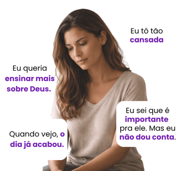 💜 A fé só permanece quando cabe na rotina e alcança o coração dos nossos filhos.